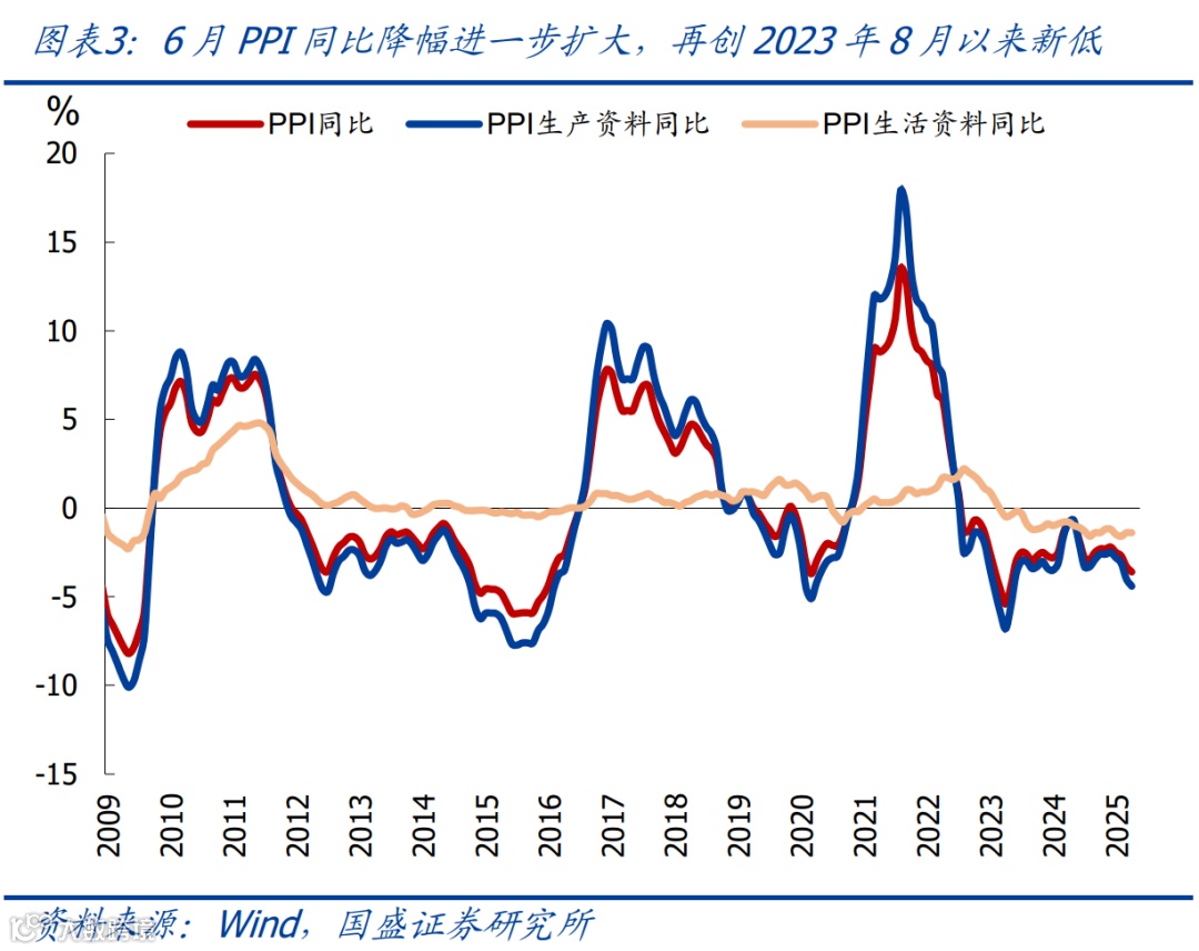 产能利用率下滑,供需关系平衡被打破,直接影响了PPI数据的表现。6月PPI同比-3.6%,低于前值和预期,再创2023年8月以来新低,环比-0.4%,同比增速连续32个月处于负增长区间。这形成了“产能利用率低→供过于求→PPI下行→企业减产→产能利用率更低”的恶性循环,进一步加剧了产能荒废的程度。