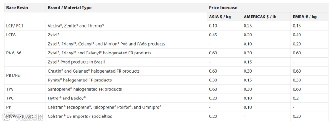 这并不是塞拉尼斯今年以来的第一次涨价,今年2月,塞拉尼斯就曾宣布其工程材料产品将涨价,于3月1日生效。