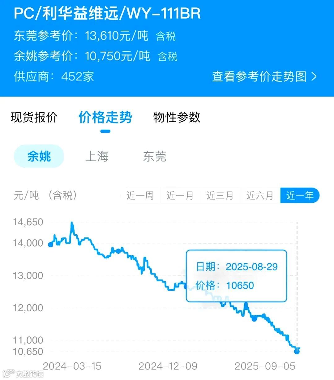 目前国内工厂基本都在满负荷生产,只有盛通聚源和万华化学进行了短期检修,市场上根本不缺货。进入9月份,上游原料价格可能会有波动,但如果下游需求跟不上,涨价也维持不了多久。总的来说,PC市场可能还会在低位徘徊。