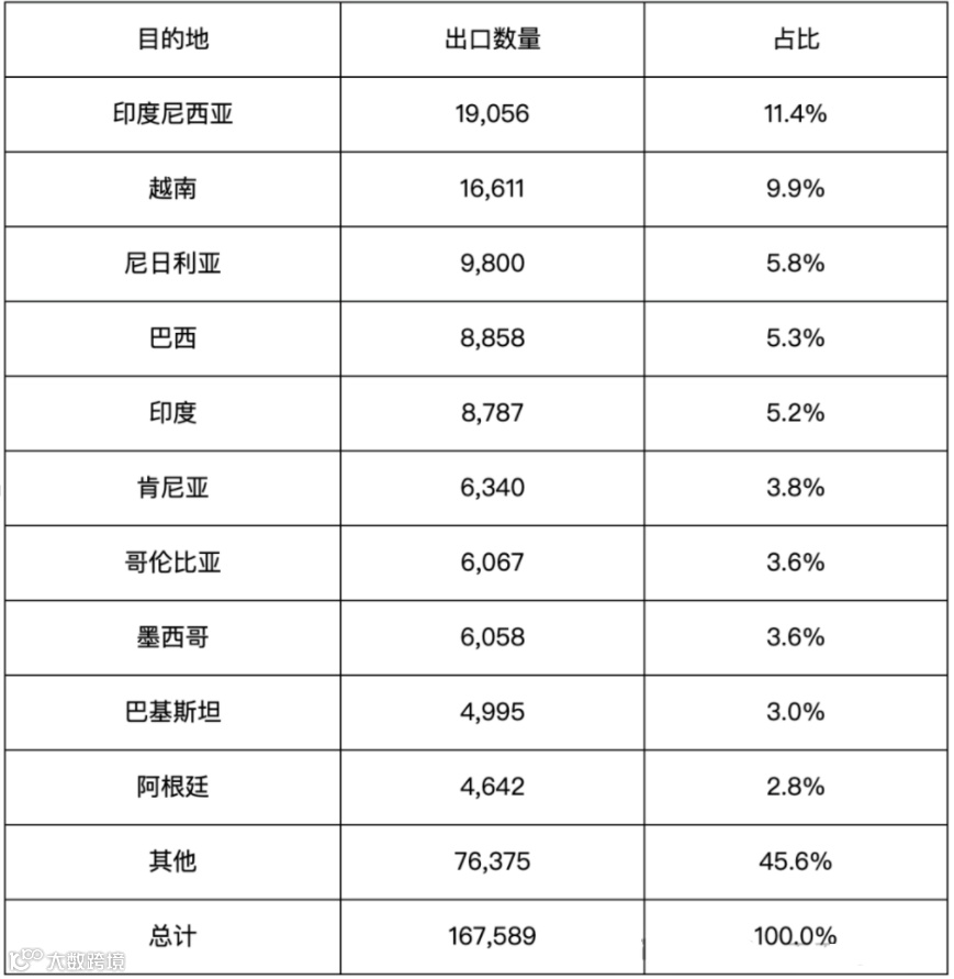 表2:2025年1~4月我国出口TDI主要目的地及数量统计(单位:吨)