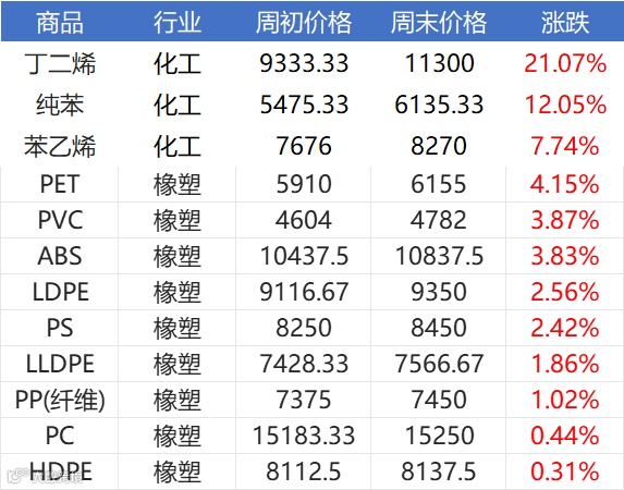 除此之外,丁二烯涨势也十分惊人,5月12日起至今涨达2000元/吨 ,目前价格涨至11366元/吨附近,较上月涨幅超30%!