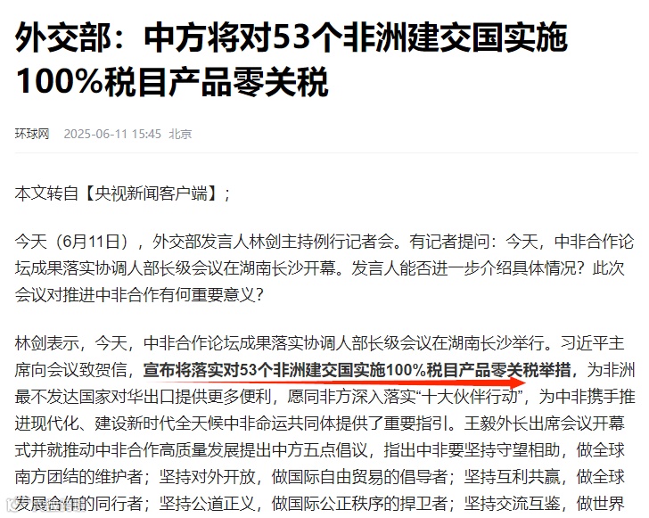 非洲拥有全球75%的磷矿储量(摩洛哥占50%,撒哈拉以南占25%),全球60%的钴矿(刚果金独占70%)及30%稀土储备。以磷肥生产为例,关税取消将使每吨原料采购成本下降8-12%,按年产百万吨级装置计算,年节约成本超2亿元。中石油在乍得的油田开发成本每桶将从45美元降至40美元,直接提升国际原油市场竞争力。