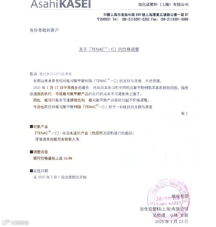 就在 2025 年 2 月 1 日,旭成化塑料正式发布调价通知,宣布在现行价格基础上直接上调 33.9%。这一价格调整幅度之大,足以吸引行业内外众多关注的目光,也预示着相关市场即将迎来新一轮的变革与挑战 。