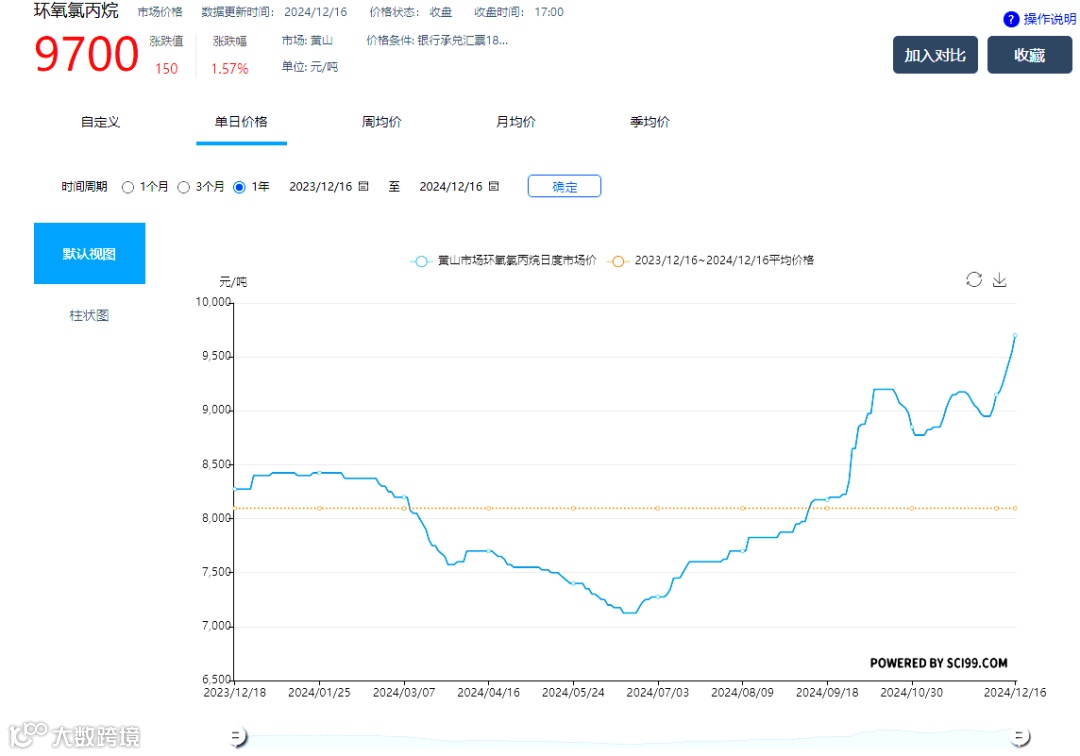 环氧氯丙烷近日呈现出火爆涨势,江苏、黄山地区市场报价9700-9900元/吨,山东地区市场报价9400-9600元/吨,周涨超过500元/吨。其上游丙烯报价周涨50元/吨至7250元/吨,液氯山东槽车报价日涨上涨125元/吨至250-400元/吨,两者的价格调涨无疑给环氧氯丙烷带来了较大的成本压力。