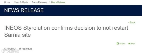 英力士苯领公司近日宣布,将不重启其位于加拿大安大略省萨尼亚市的苯乙烯工厂,并计划在2025年第四季度初完成关停工作。这一决定引发了业内广泛关注。