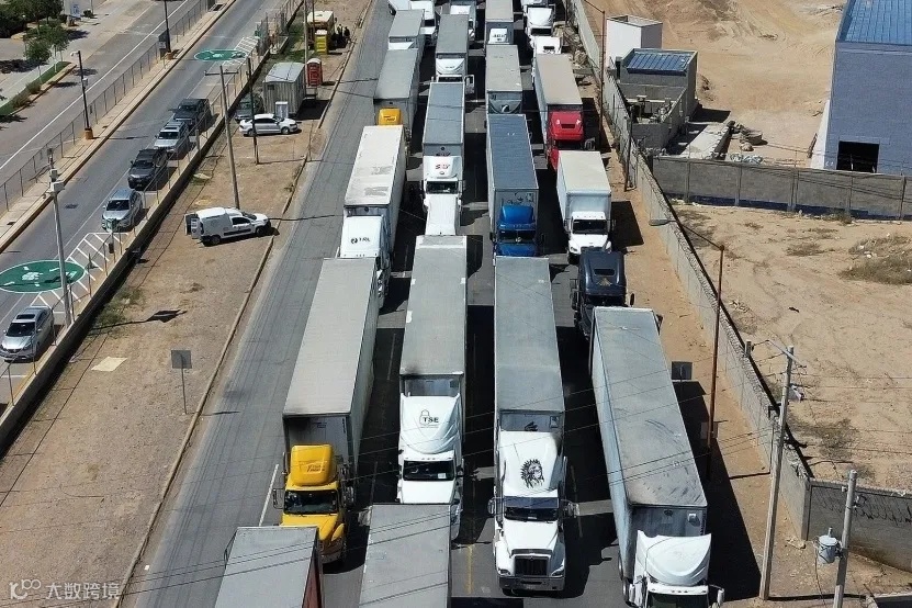 △自墨西哥准备入境美国的货运卡车(资料图)
