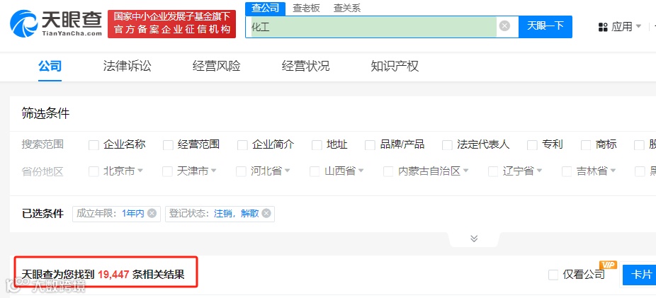 如果说破产重整还有希望从头再来,那选择注销的企业就是彻底退出舞台了,然而这样的企业同样不在少数。天眼查数据显示,成立一年内且注销或解散的化工企业竟有约2万家!
