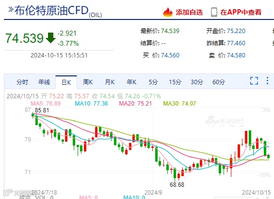 10月14日,国际油价遭遇重挫,WTI原油收盘71.28美元/桶,跌4.60%;布伦特原油收盘75.07美元/桶,跌4.76%。截至广化君发稿,跌势仍在延续!