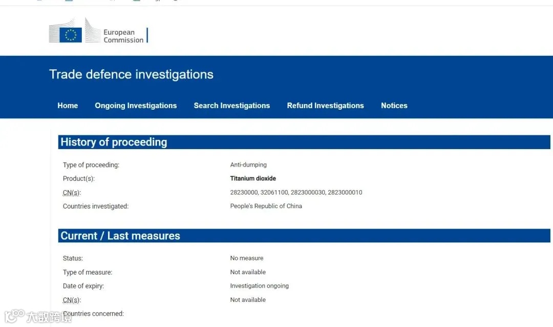 印度对原产于或进口自中国的二氧化钛(Titanium Dioxide)发起反倾销调查。本案倾销调查期为2022年10月1日至2023年9月30日(12个月)。