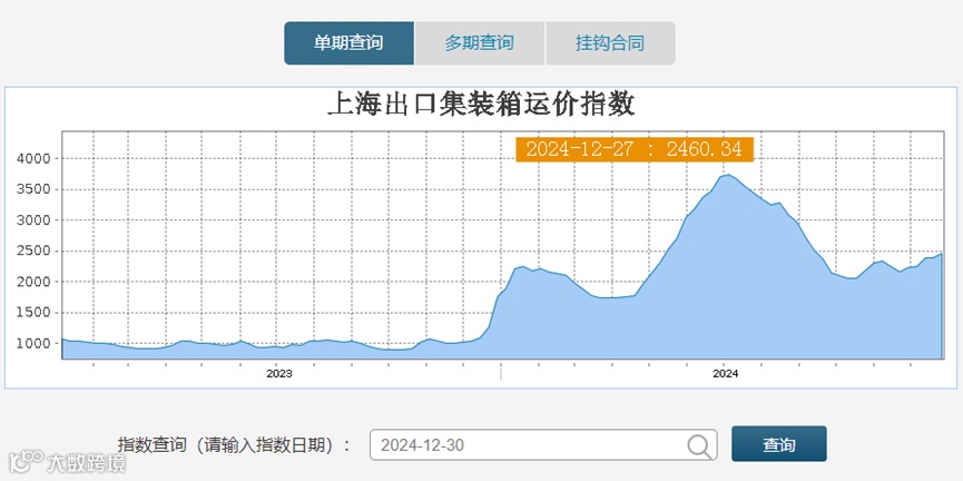 受美东码头可能发生的罢工事件影响,远东至美西和美东航线的运价持续上涨。远东至美西航线的运费预计将再增加1500美元,涨幅达到30%;远东至美东航线的运费则将增加1000美元,涨幅为15%。远东至美西的每FEU(40尺柜)价格上涨了9.1%;远东至美东的每FEU价格上涨了7.7%。截止到2024年12月27日,上海出口集装箱运价指数(SCFI)已经达到了2460.34点,相较于一周前的 2390.17 点上涨了3%。