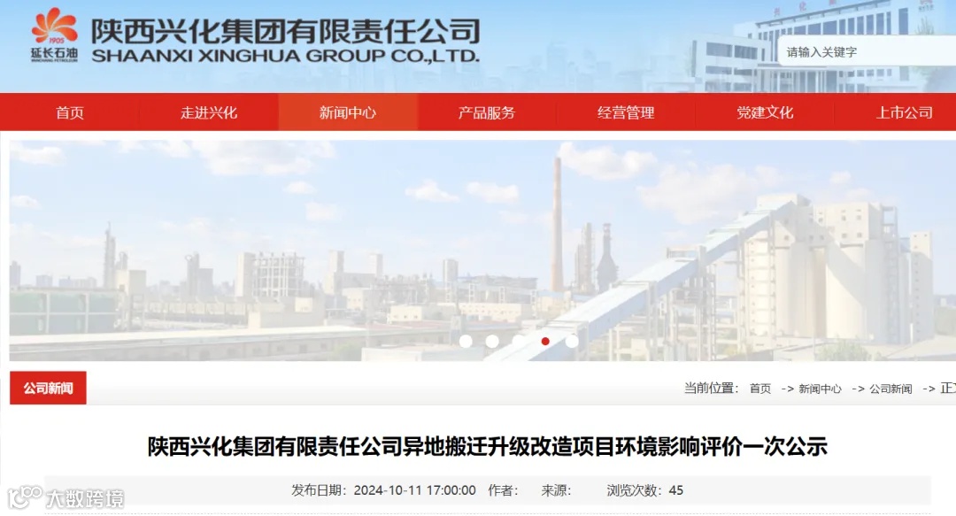 10月11日,兴化集团官网发布《陕西兴化集团有限责任公司异地搬迁升级改造项目环境影响评价一次公示》。