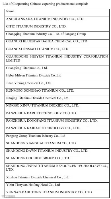 对原产于或进口自中国的二氧化钛发起反倾销调查。