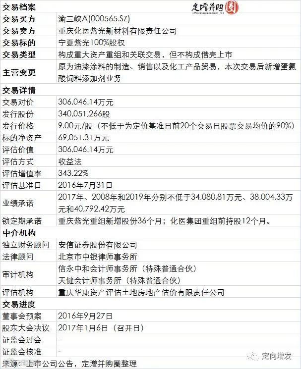 拟向重庆紫光发股收购其持有的宁夏紫光100%股权,交易对价30.93亿元,经此交易将跨界进入饲料添加剂业务。