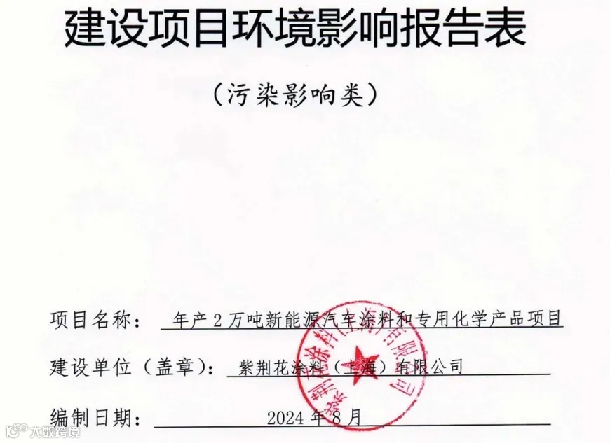 紫荆花涂料(上海)有限公司计划总投资1835万元新建年产2万吨新能源汽车涂料和专用化学产品项目,项目建成后可实现年产值3亿元,这是其首次建设新能源汽车涂料生产线。