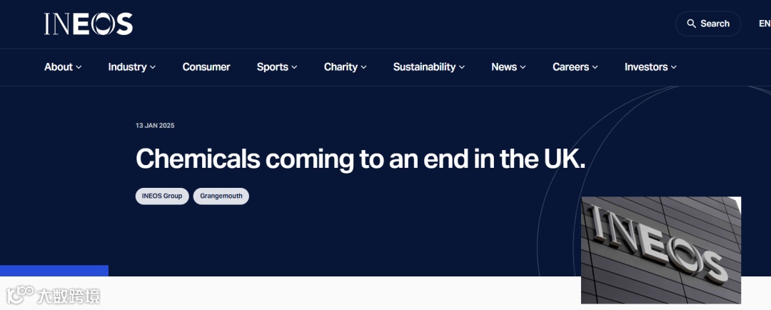 2025年1月13日,英力士宣布英国化工行业即将终结。由于缺乏能源战略和高碳税,英力士关闭了英国仅存的一家合成乙醇工厂,造成数百人失业。