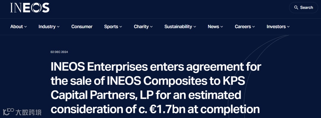 2024年12月2日,英力士发布公告,将其复合材料业务出售给私募股权投资公司KPS,交易完成后的估价约为17亿欧元,预计将于2025年上半年完成。该业务在欧洲、北美和南美、亚洲和中东等地的17个工厂和3个技术中心拥有约900名员工。
