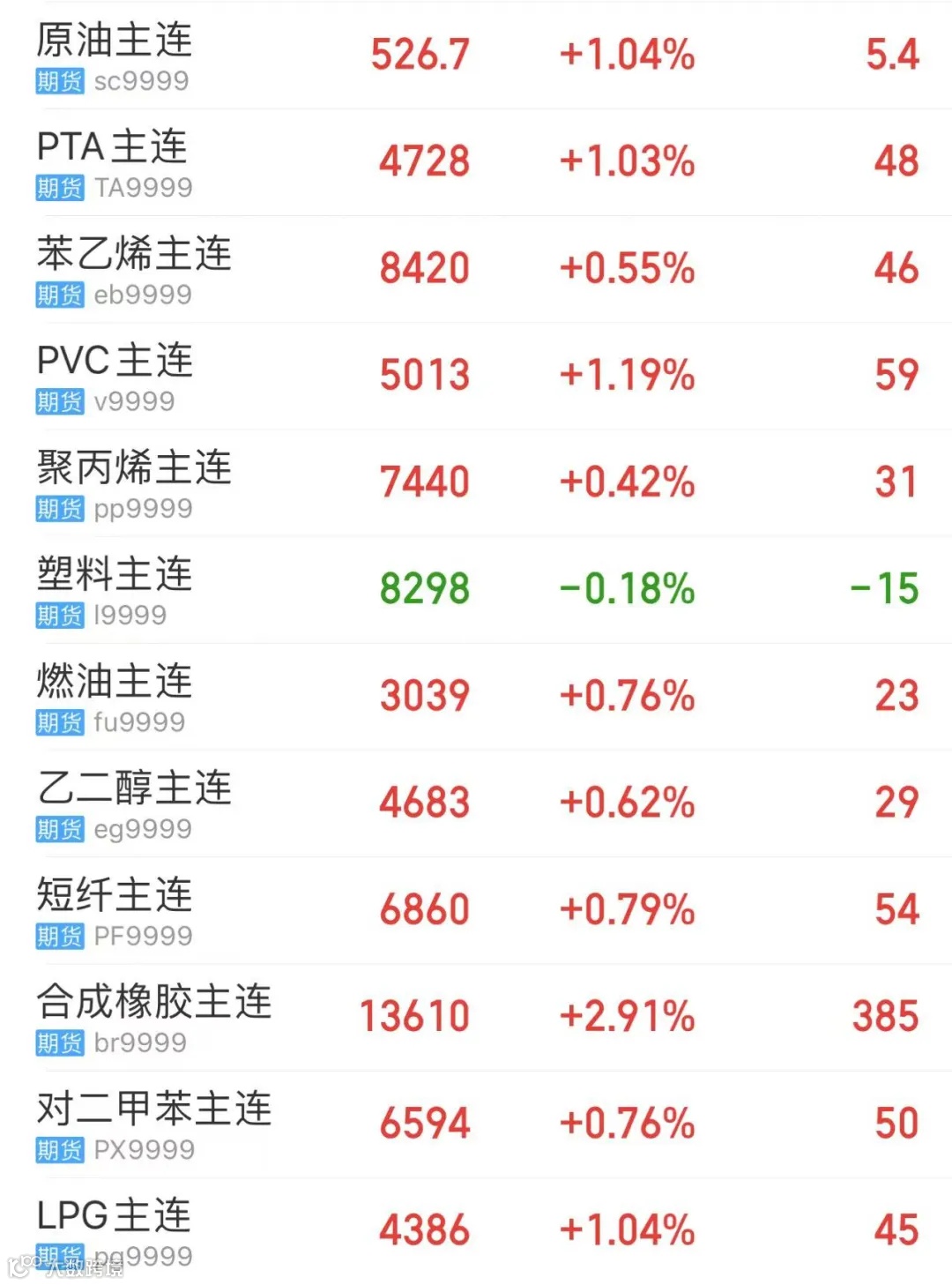 大宗市场方面,原油接连两日小涨,加上近日国内释放政策稳增长信号,市场行情受到提振,大宗商品原油、苯乙烯、PVC、聚丙烯等迅速拉升!