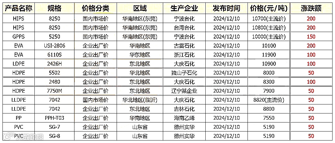 ▶濮阳盛通聚源PC出厂价格上调200元/吨;