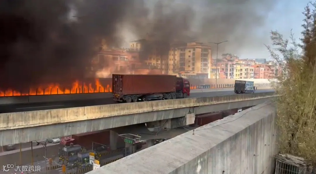 相关视频显示,起火现场冒出巨大浓烟,形成一条火龙。
