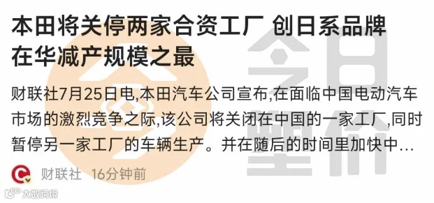 昨天(7月25日),新闻报道,本田拟关闭广州与武汉两家工厂以缩减燃油车过剩产能。