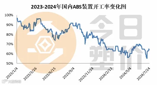 及至7月中旬,伴随北方华锦、中石化英力士苯领(宁波)装置全线停车,国内ABS开工率降至低位。然中下旬天津大沽、吉化(揭阳)提负,宁波LG甬兴检修进入尾声,浙江石化二期装置产出优级品,国内ABS装置开工率提升,且后期货源供应存增加预期,而下游仍处于需求淡季,业者对供需面担忧情绪再度转浓。