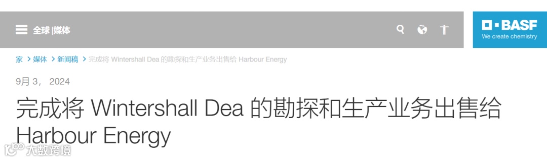 9月3日,巴斯夫宣布经所有相关部门批准,Wintershall Dea的勘探和生产 (E&P) 业务(不包括俄罗斯相关业务)于本消息公告之日转让给 Harbour;该业务包括生产和开发资产以及挪威、阿根廷、德国、墨西哥、阿尔及利亚、利比亚(不包括 Wintershall AG)、埃及和丹麦(不包括Ravn)的勘探权以及 Wintershall Dea 的碳封存 (CCS) 许可证。