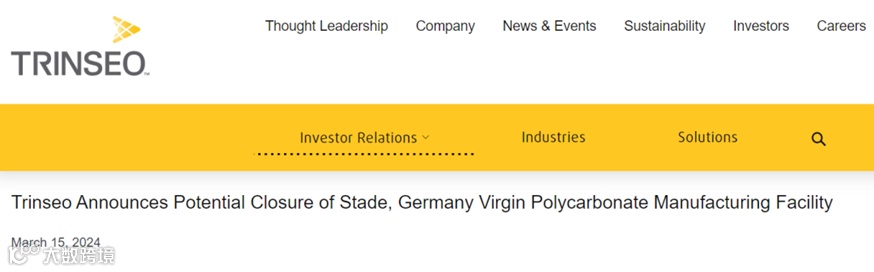 ▶▶盛禧奥:可能将德国施塔德(Stade)的聚碳酸酯(PC)生产基地关闭。