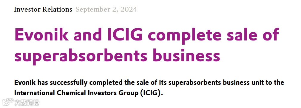 据相关报道,该项业务的剥离始于2022年5月,2024年3月正式确认出售给ICIG,2023年7月,业务剥离迎来重要节点,相关竞标者提交的最终报价约为2亿~2.5亿欧元,仅为赢创的预期报价的一半。