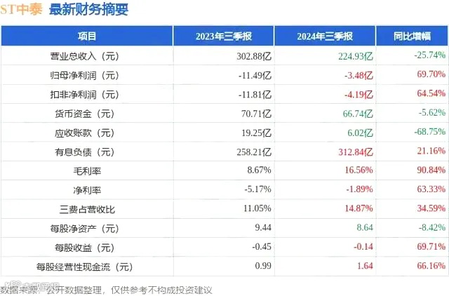 中泰化学召开特定对象调研会,对三季度业绩、ST撤销进展和收购圣雄能源情况进行解答。上半年公司因降本增效和原材料价格下降实现大幅减亏,三季度持续推进降本增效。虽然公司仍未扭亏为盈,但亏损幅度同比大幅降低。并且ST中泰表示,“公司有信心在 2025 年摘帽。”