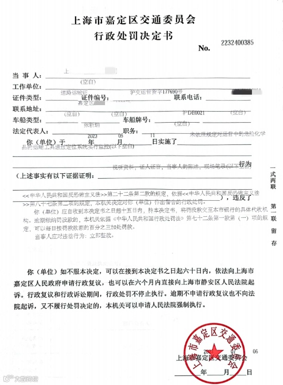 近日,上海市公布2023年度行政执法“十大案例”和“指导案例”。嘉定区交通委执法大队查处某化工公司在托运的普通货物中违规夹带危险化学品案上榜“十大案例”,这也是本市查处的企业在托运普通货物中违规夹带危险化学品行为的首例案件。