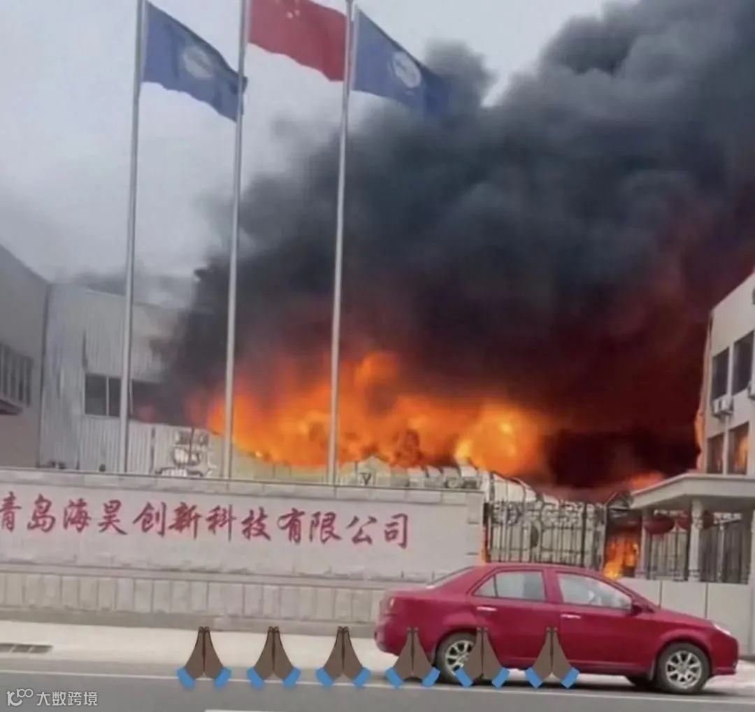 4月23日,网传山东省青岛海昊创新科技有限公司厂房发生大火。网传视频显示,现场有较大范围的明火,并且有浓烈的黑烟冒出,有消防车在现场进行灭火。