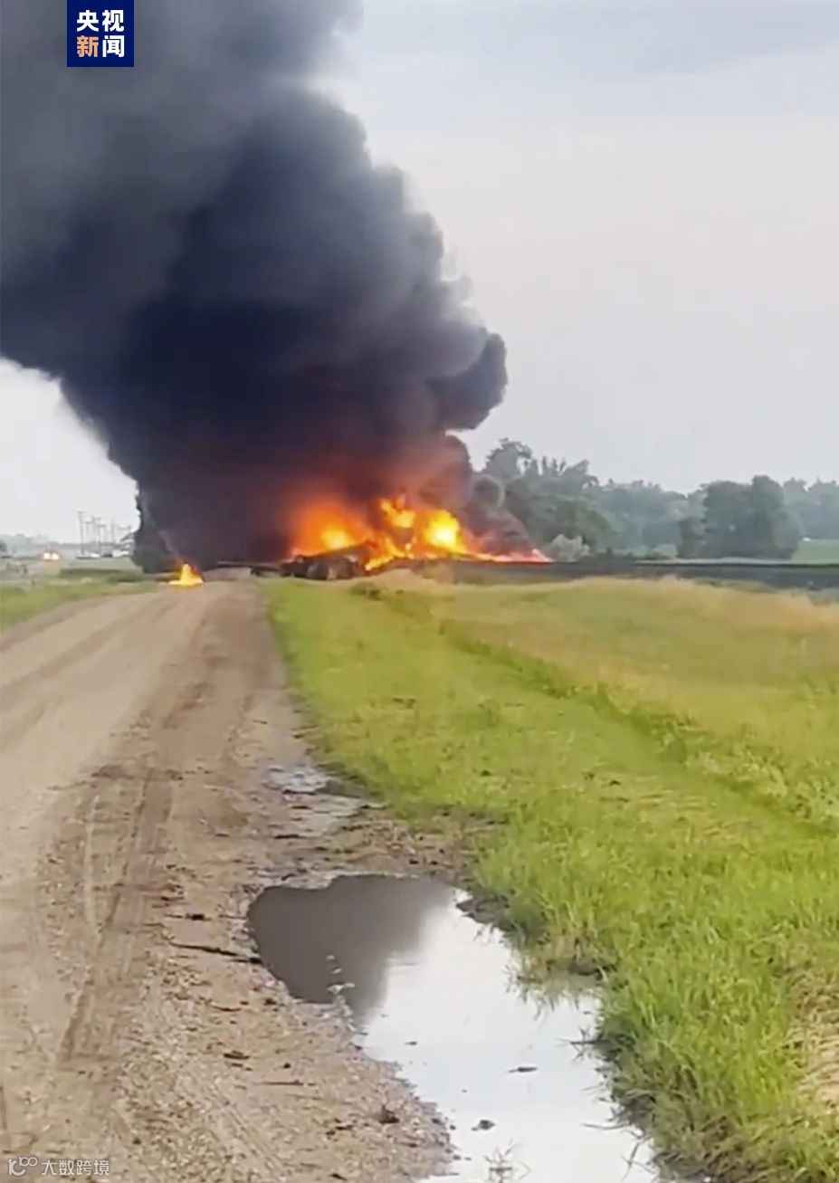 突发!美国一列载有甲醇等危险品火车脱轨起火
