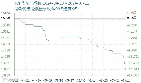 事实上,我们看看两个产品的价格走势会发现,目前MDI和TDI的行情来看并不理想,两个产品近期的国内市场价格双双走跌,尤其是TDI,价格不断下行已经跌破14000元/吨心理关口