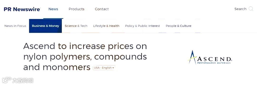 据美通社2月20日消息,全球知名的大型一体化PA66产品系列生产商Ascend Performance Materials(奥升德)宣布,其聚酰胺聚合物、化合物和单体的全球价格全面上涨。价格将于2024年3月1日生效,消息中未提及涨价原因。