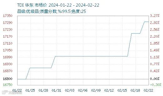 节后归来,上海科思创TDI最新执行价17300元/吨,环比上调500元/吨,挺市意向明确。同时生意社数据显示,节后TDI价格上涨趋势明显,华东市场价在17300左右,后续或有持续上涨空间。