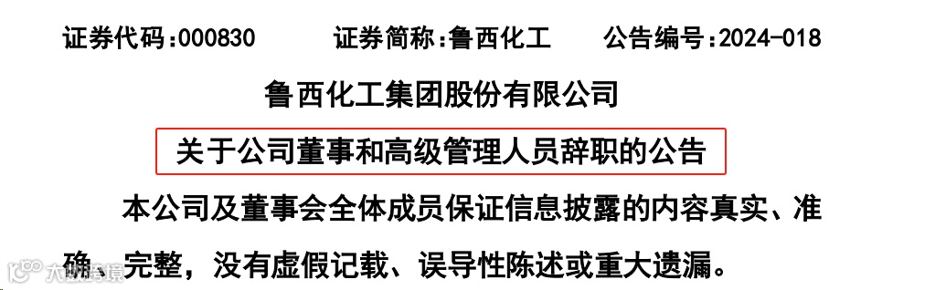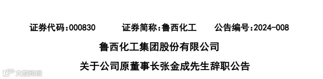2月7日,鲁西化工发布关于公司原董事长张金成辞职的公告。