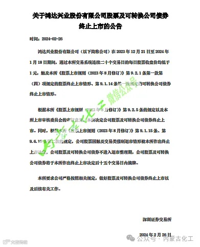 2023年12月,ST鸿达子公司内蒙古中谷矿业有限责任公司被申请破产重整,同时旗下内蒙古中科装备有限公司和西部环保有限公司也被申请破产清算。