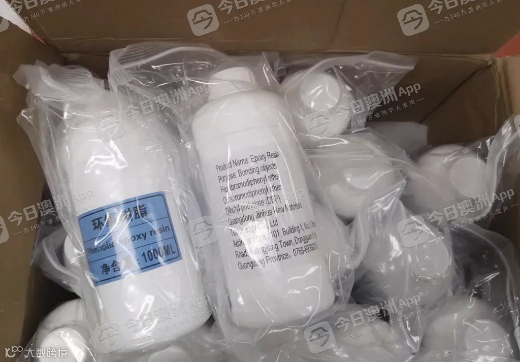 “警察说,瓶子里的不是环氧树脂,而是1.4-丁二醇,可用作毒品,在澳洲持有许可的企业才可以合法进口。”