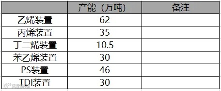 巴斯夫位于路德维希港南部工厂的主要生产装置产能: