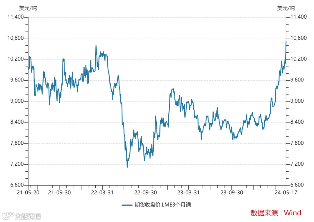 在3月下旬的小幅调整后,4月铜价再度强势上涨并再度冲破10000美元/吨。伦铜4月均价为9594美元/吨,为2022年5月以来月均价最高值,同比上涨8.8%,环比上涨9.3%,1-4月均价为8801美元/吨。国内价格亦大幅攀升至80000元/吨以上,SMM1#电解铜4月均价为77038元/吨,同比上涨11.8%,环比上涨8.6%,1-4月均价为71342元/吨,同比上涨3.9%。