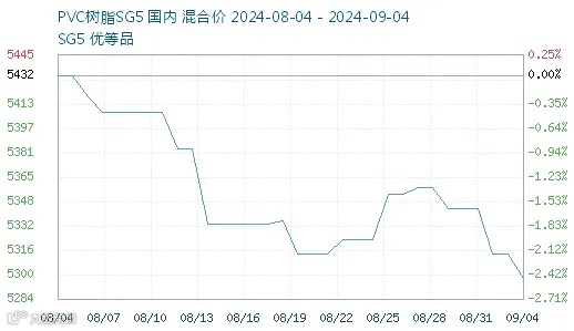 6月至今,PVC市场不断的刷新年内低点位置。截至9月3日,常州SG-5主流价格跌至5270元/吨,再创年内新低,较6月高点下跌930元/吨,跌幅15.00%,呈现出旺季不旺的行情。