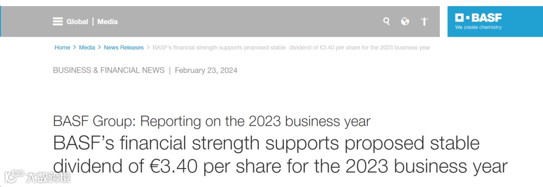 巴斯夫2023年销售额为689亿欧元,同比下降21.1%;未计特殊项目的息税折旧摊销前利润(EBITDA)为77亿欧元,同比下降28.7%;经营活动现金流量为81亿欧元,同比增长 5.2%;自由现金流为27亿欧元,同比下降18.5%。