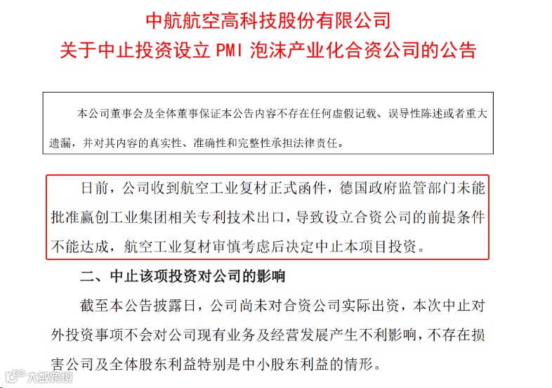 除此之外,就在刚刚过去的2月,由于涉及“卡脖子专利技术”,德国政府监管部门未能批准赢创工业集团相关专利技术出口,故国内央企中航高科与赢创合作的聚酰亚胺项目被迫终止。