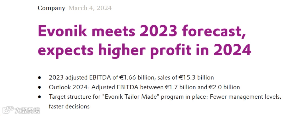 根据赢创2023业绩报告,上述裁员人数基本确认为“最多2000名”,其中,这2000个裁员名额中将有1500个在德国。而包括裁员在内的重组计划初步预计将2026年年底完成,完成后,每年可节约约4亿欧元。