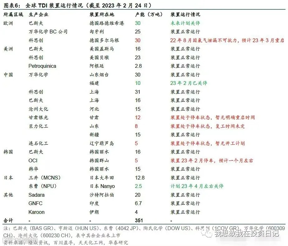 近年来由于海外装置供给出现明显停滞,如2023年4月份,日本东曹关闭了其2.5万吨/年TDI装置。