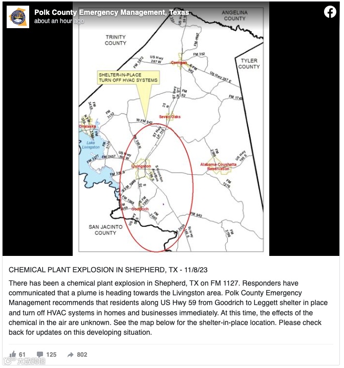 发生爆炸的万全资源解决方案公司位于谢泼德。受影响的社区在休斯顿东北约100公里处,有2000名居民。