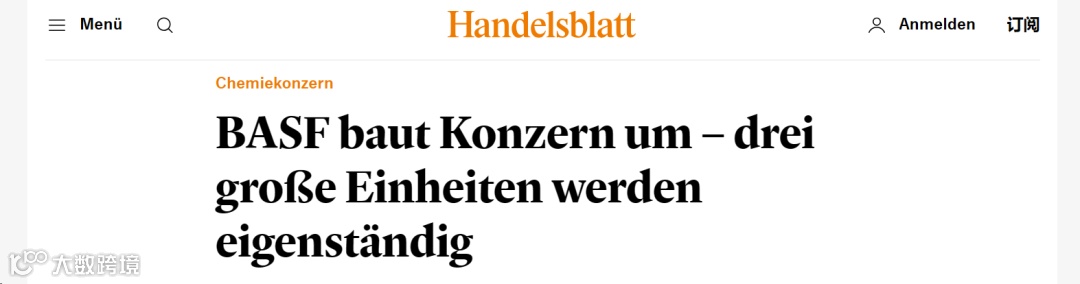 12月7日,据德国商报报道,巴斯夫宣布将把农产品、涂料、电池材料这三个大型业务部门从公司的现有结构中分离出来,转入法律上的独立单位。