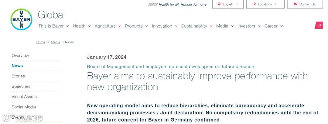 2023年11月,在发布第三季度财报后,拜耳就表示考虑对三大业务部门分拆重组(制药、消费者健康及农作物科学),并决定大幅裁员,首当其冲的是管理层。CEO Bill Anderson认为,拜耳和客户之间隔着12层管理“实在太多了”。