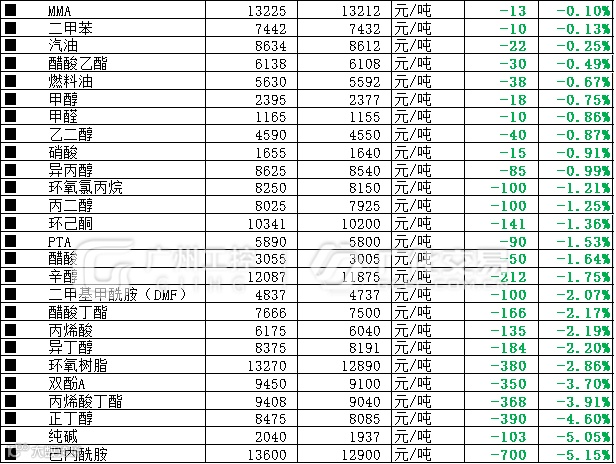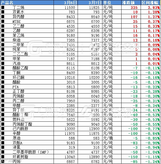 再来看下三月跌榜,纯碱、环氧树脂、双酚A、甲醇等热门原料均在跌幅榜行列,预计随着两会禁运停产、安全大检查等消息影响,以上走跌的产品会因供应暂停问题小幅上行,各位可提前部署、按需备货哦!