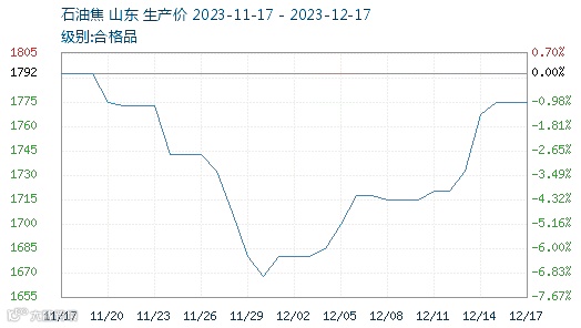石油焦12月17日最新价格1775.00元/吨,最近5天上涨3.20%。